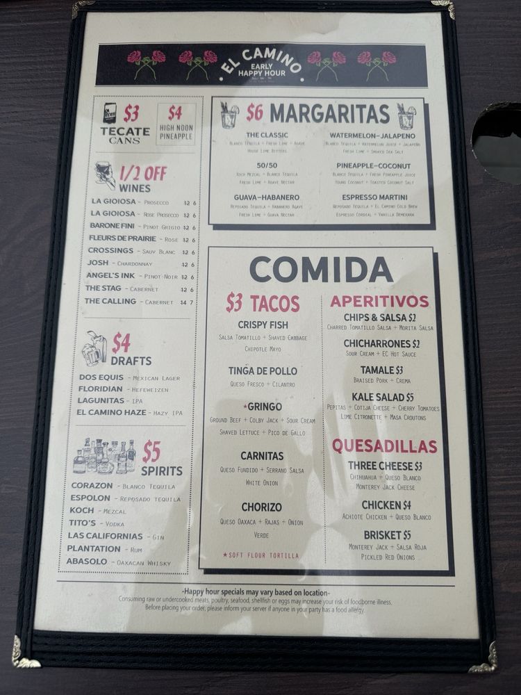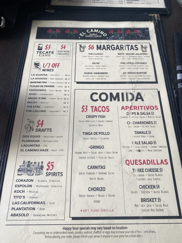 El Camino - West Palm Beach is a trendy Mexican restaurant in the heart of Florida, offering a mix of traditional and modern dishes. With a focus on New Mexican cuisine, El Camino provides a variety of vegan options and some limited vegetarian choices. The restaurant is casual and tourist-friendly, with outdoor seating and a full-service bar offering happy hour specials. The menu features flavorful dishes that cater to a range of tastes, and the atmosphere is perfect for groups looking for a fun and lively dining experience. The staff provides excellent service, and the restaurant is equipped with ADA-compliant facilities. Whether you're looking for a quick meal to go or a sit-down dinner with friends, El Camino is a great choice for delicious Mexican food in West Palm Beach.