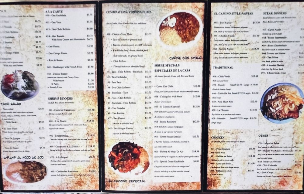 Served with Mexican rice and your choice of salsa and beans. Garnished with sour cream, guacamole, and pico de gallo.